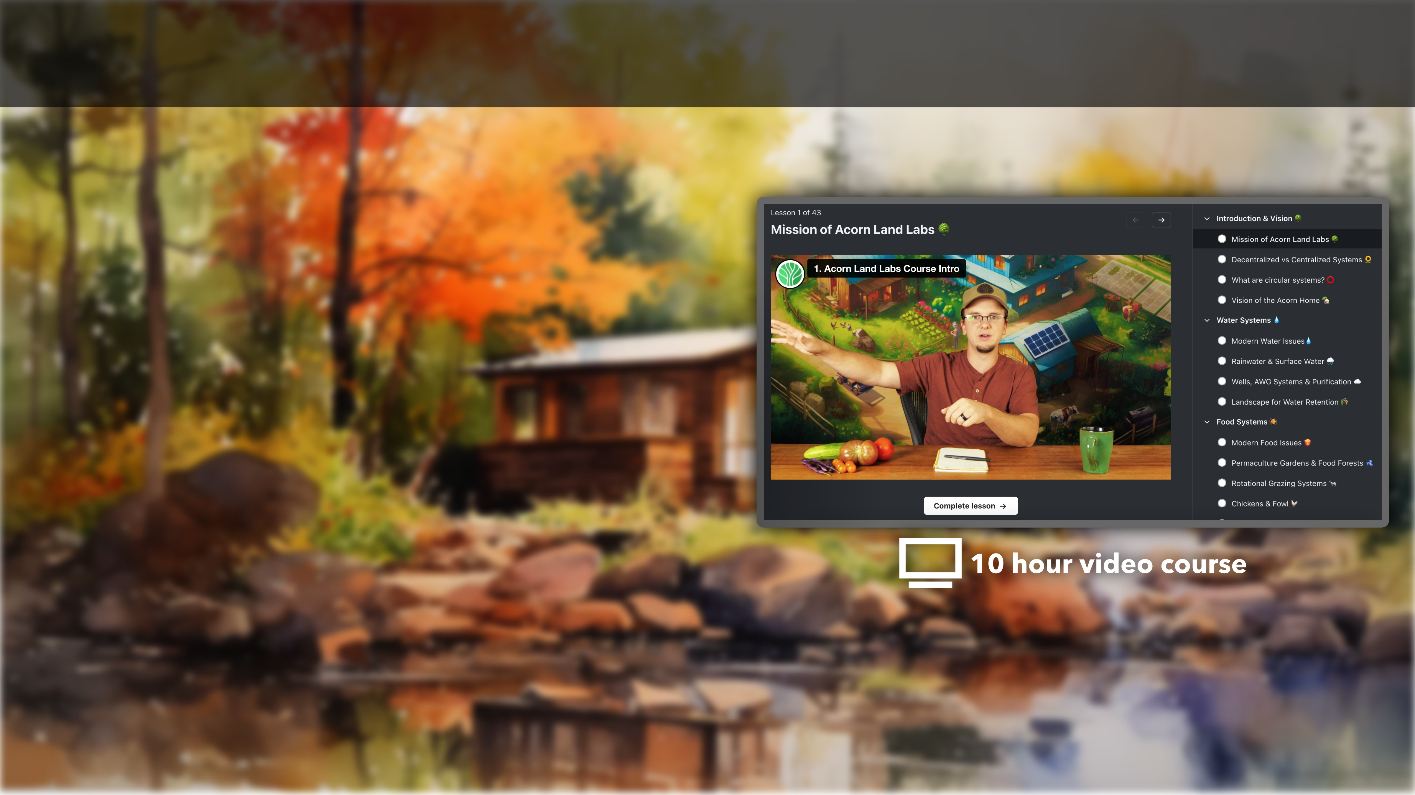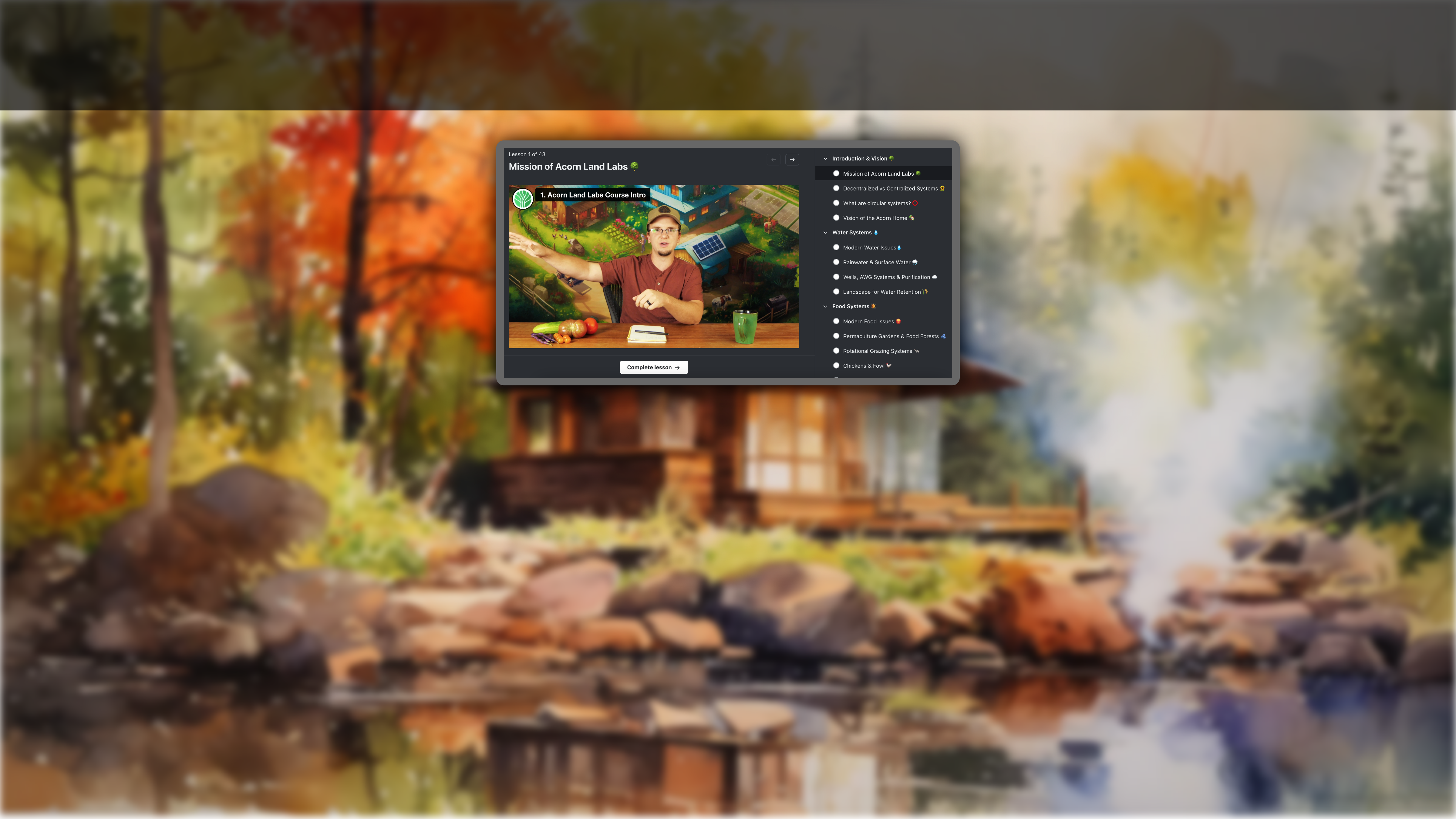 This course gives an in depth look at every system we need in order to get up and running our off-grid (or even partially off grid) sustainable lifestyles. I have been researching for a number of years piecing together information here and there about different systems, different choices within each system and quite frankly, it's been exhausting and overwhelming. I had often felt like giving up. This course does all the leg work for me, even covering all the important reasons we need to be doing this for our families, our health and for future generations, and I get to get down to the business of implementing the strategies I choose, which are very clearly explained. I'm learning so much in every single video. I'm constantly sharing the nuggets of wisdom I'm learning with my family and everyone is getting excited about the new ways of living. I really enjoy seeing Kemble's friendly face and his positive attitude about even our small changes being able to make a huge difference is reassuring. A lot of people teaching this kind of lifestyle have a survival of the fittest attitude, hardcore negative about society with a "lack" mentally. Thankfully, none of those things are present in this course or Kemble's delivery. It's all about making the world a better place and improving our lives without relying on old systems that simply do not work or cannot / should not be relied upon. I love the course and I love being connected to the wonderful community of people, in all different stages of off-grid living. THANK YOU for this amazing course, app and community.