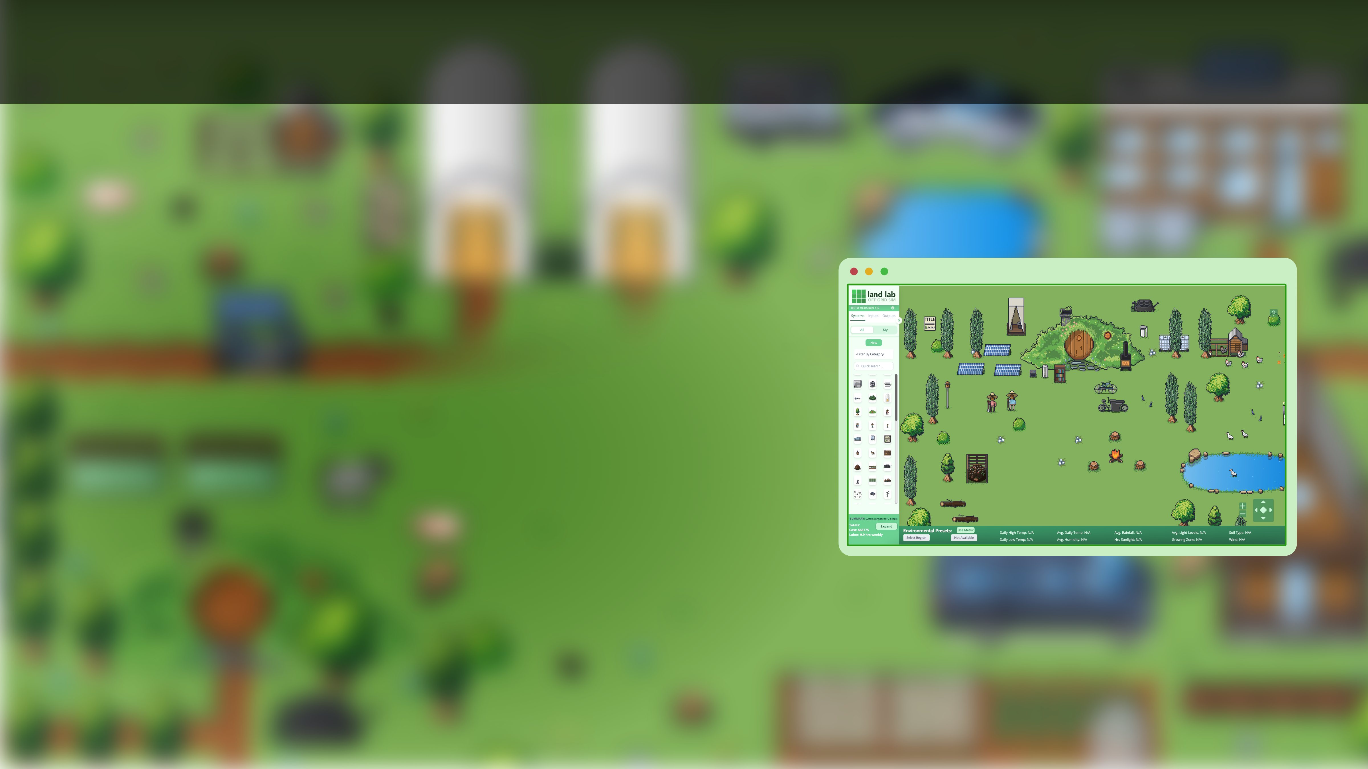 Explore the SimulatorExplore off-grid systems for water, energy, food, shelter, sanitation transportation and more! See how many people you can support with X off-grid systems.
