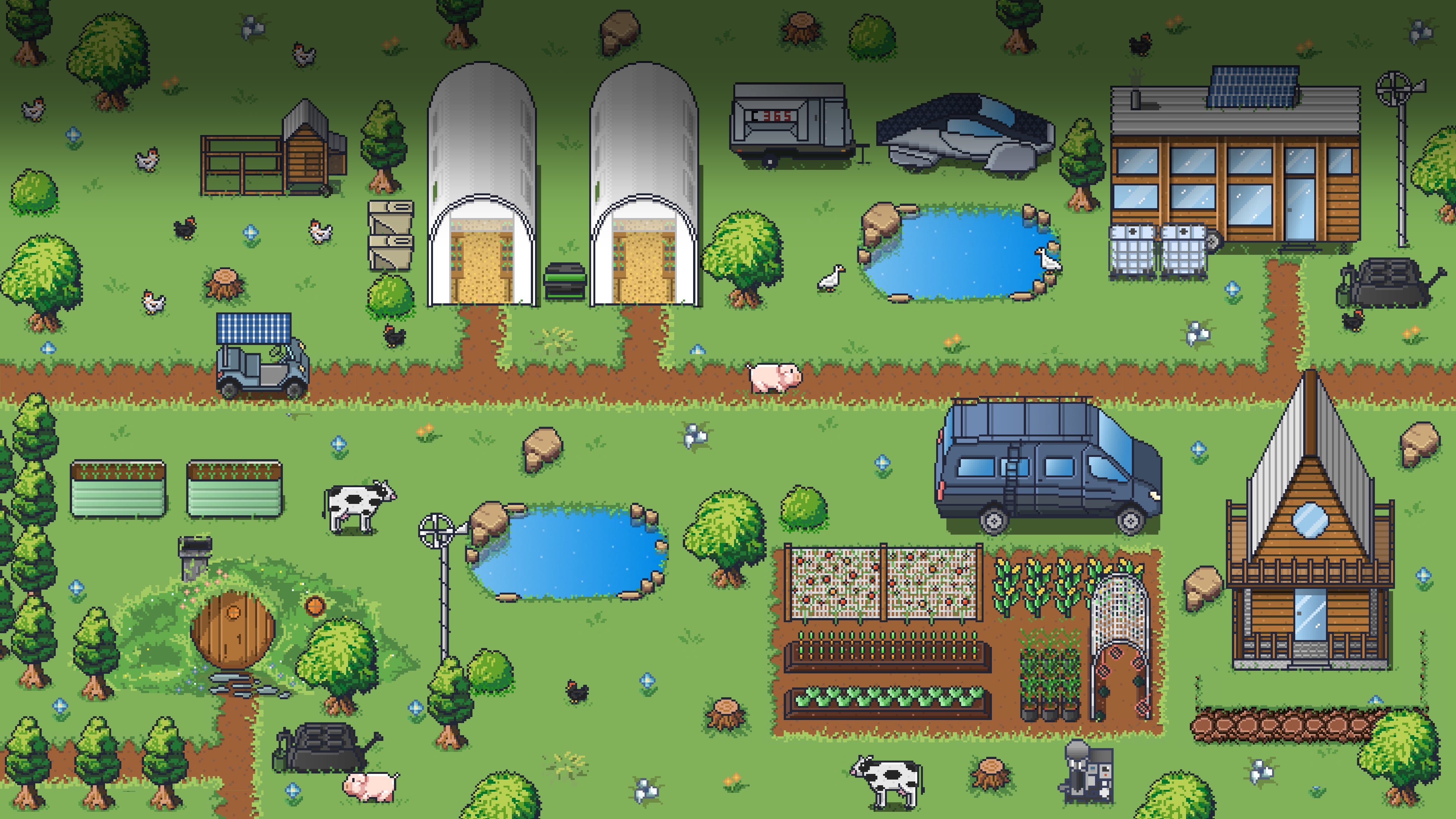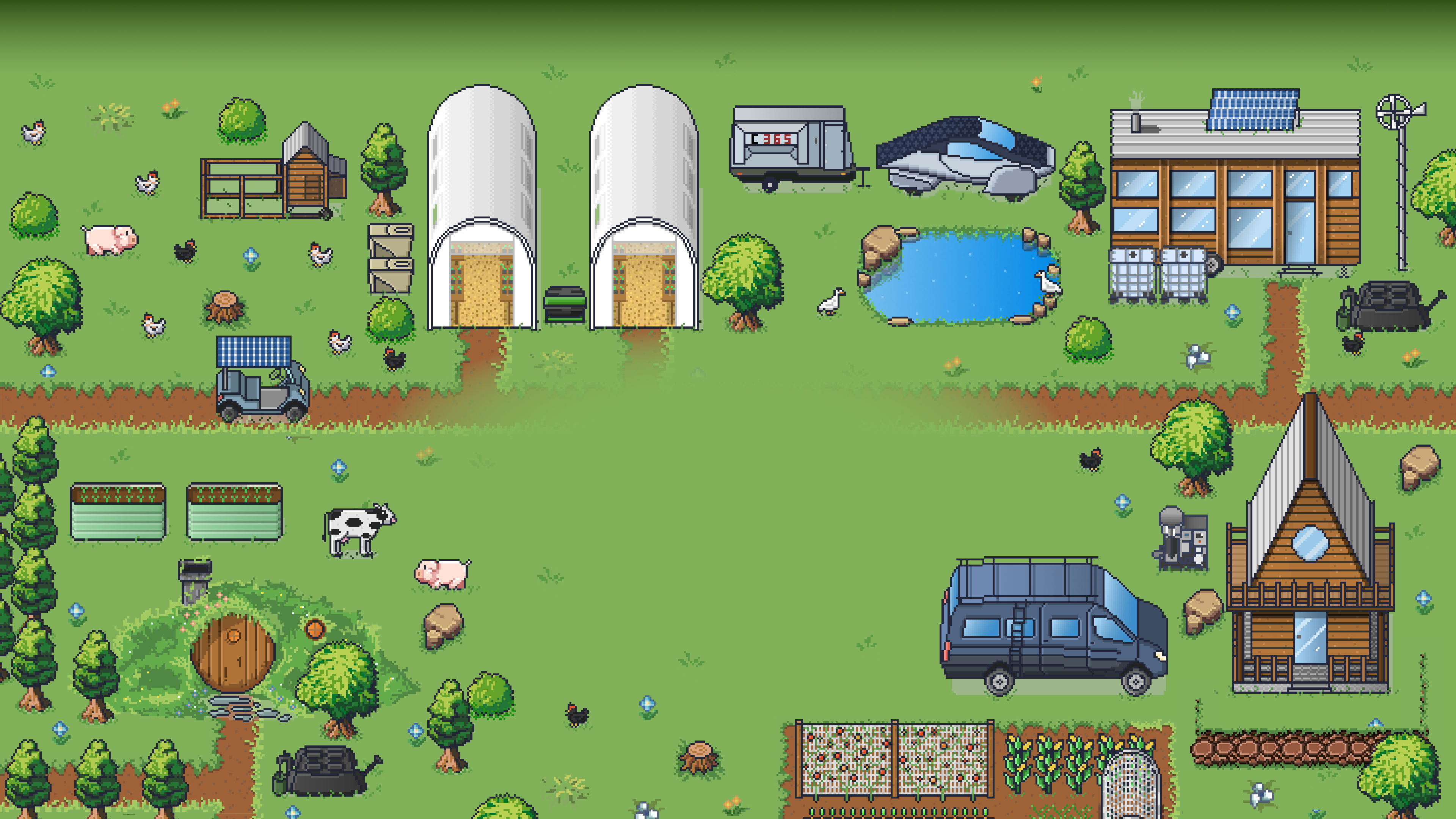Turn an empty grass lot into a vibrant off-grid land lab! Learn about sustainable agriculture, biology, ecology, composting, and many other off-grid disciplines in one integrated environment. Collect your own rain water, grow your own food, harness solar energy, and build sustainable shelters!