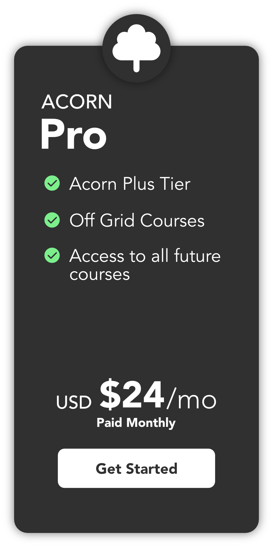 Explore our premium content, land lab simulator app, off-grid courses, weekly live stream videos, paid articles, podcasts and more! If you simply want to donate to help our mission, you can support Acorn Land Labs here!